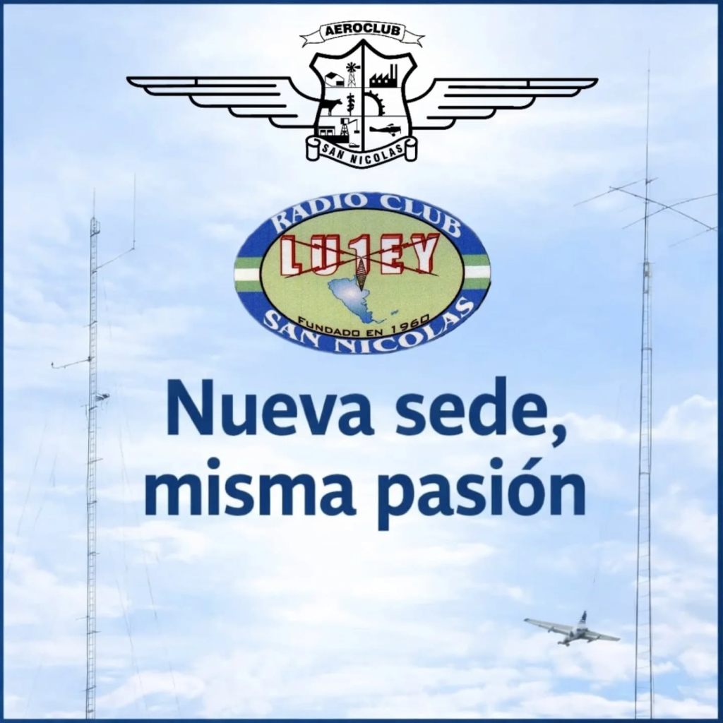 Hoy confirmamos que la sede del Radio Club San Nicolás LU1EY se encuentra en el predio del AeroClub San Nicolás, marcando el inicio de una nueva etapa para nuestra institución.